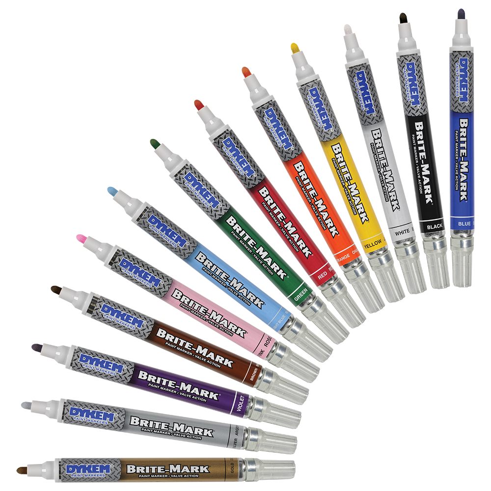 DYKEM® BRITE-MARK® is a general purpose permanent marker ideal for making clear, bold markings on almost any surface. Its quick drying, oil-based paint withstands indoor and outdoor conditions without fading, chipping or losing its opacity.